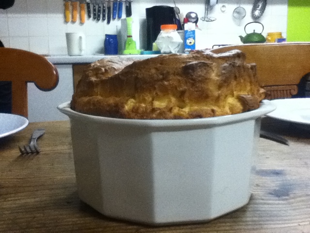In France we eat delicious dinners very late in the in the evening. We ate this souffle at 930 tonight!